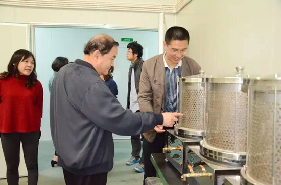 ▲四川省中醫(yī)藥科學(xué)院中藥研究所徐超群所長(zhǎng)、中國(guó)科學(xué)院成都生物研究所丁立生研究員、王鋒鵬教授參觀固體制劑中心