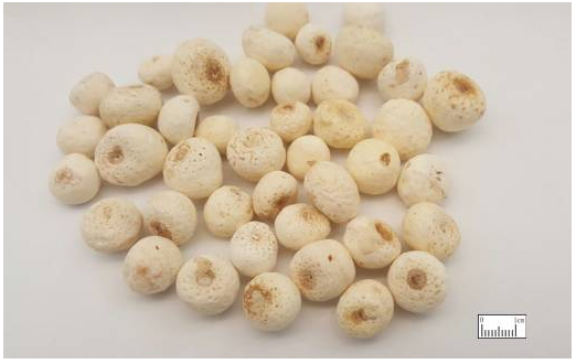 半夏生品性較辛燥,有毒,麻舌刺喉,嚴(yán)重者發(fā)生舌腫、失音聲嘶,故一般制后用。那半夏有哪些炮制品呢?先來看看半夏長什么樣吧: