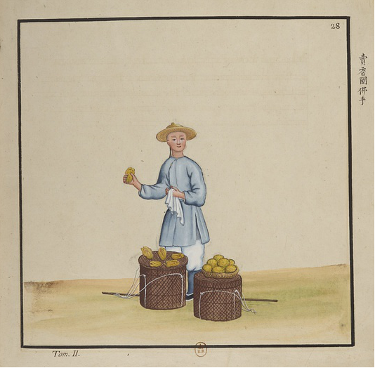 ▲清乾隆末 《北京市井風(fēng)俗圖·賣香櫞佛手》