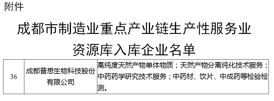 喜報(bào)!成都普思生物入選成都市制造業(yè)重點(diǎn)產(chǎn)業(yè)鏈生產(chǎn)性服務(wù)業(yè)資源庫