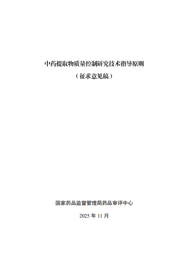 新指導(dǎo)原則征求意見(jiàn)|CDE最新發(fā)布《中藥提取物質(zhì)量控制研究技術(shù)指導(dǎo)原則(征求意見(jiàn)稿)》